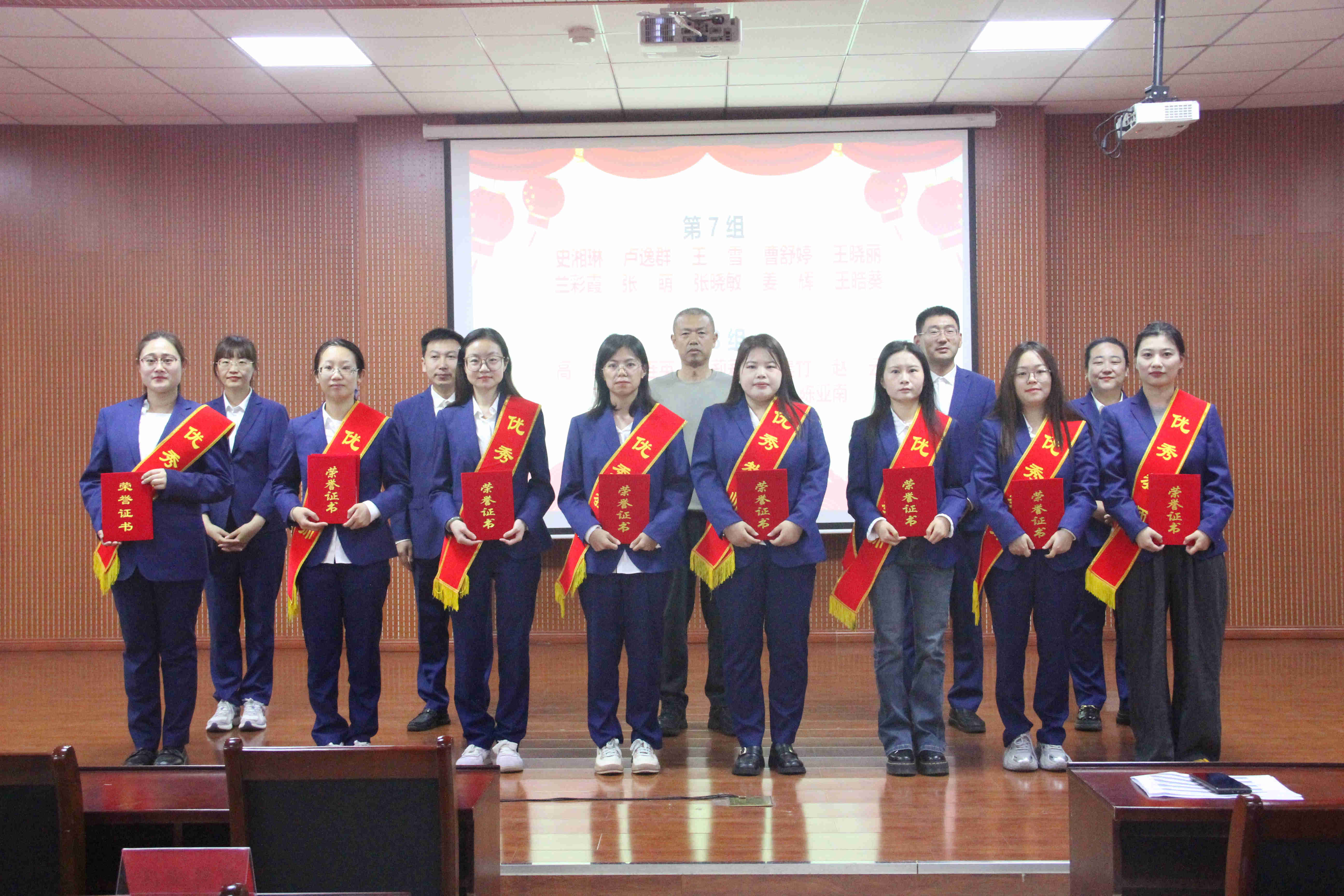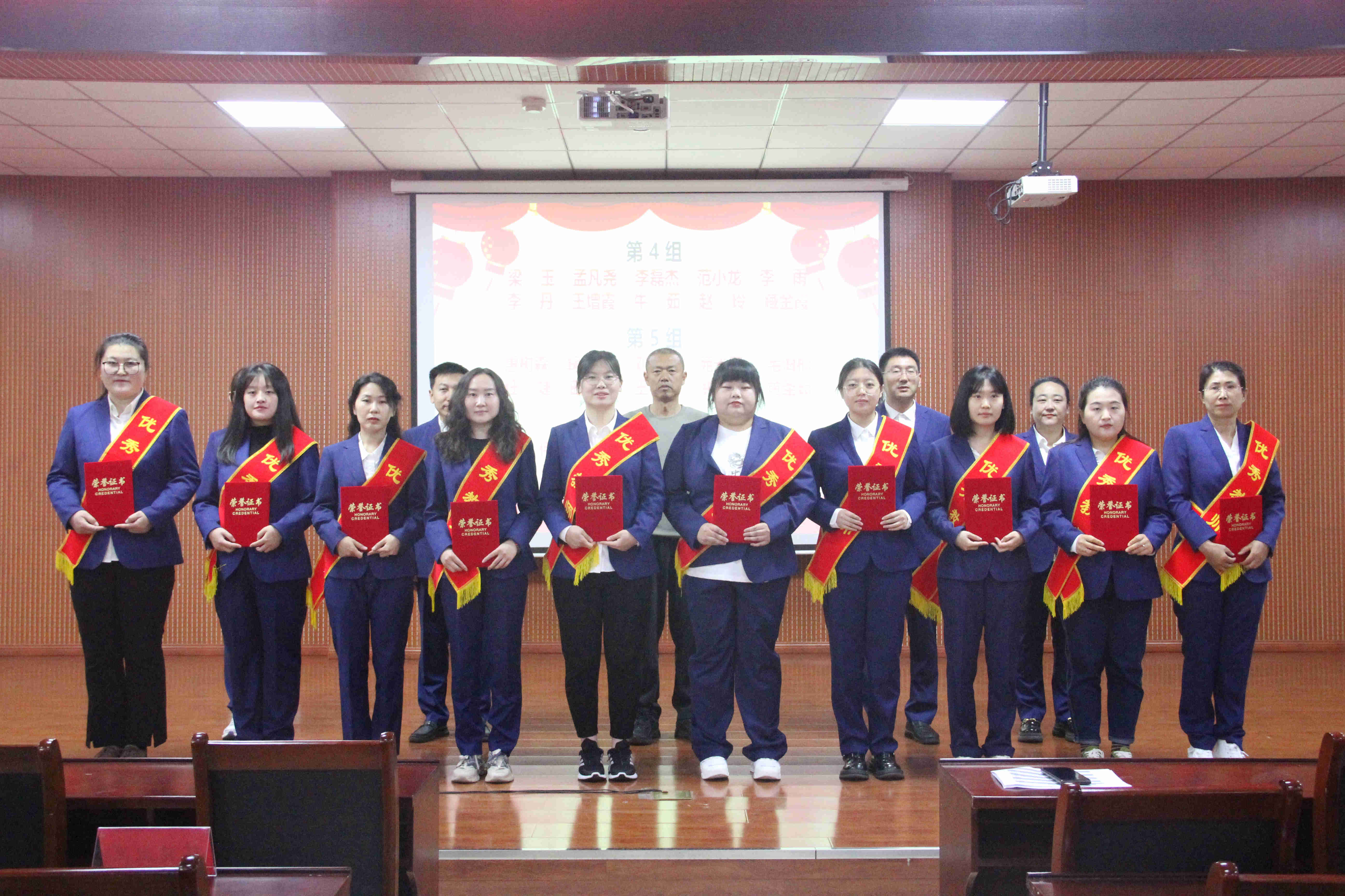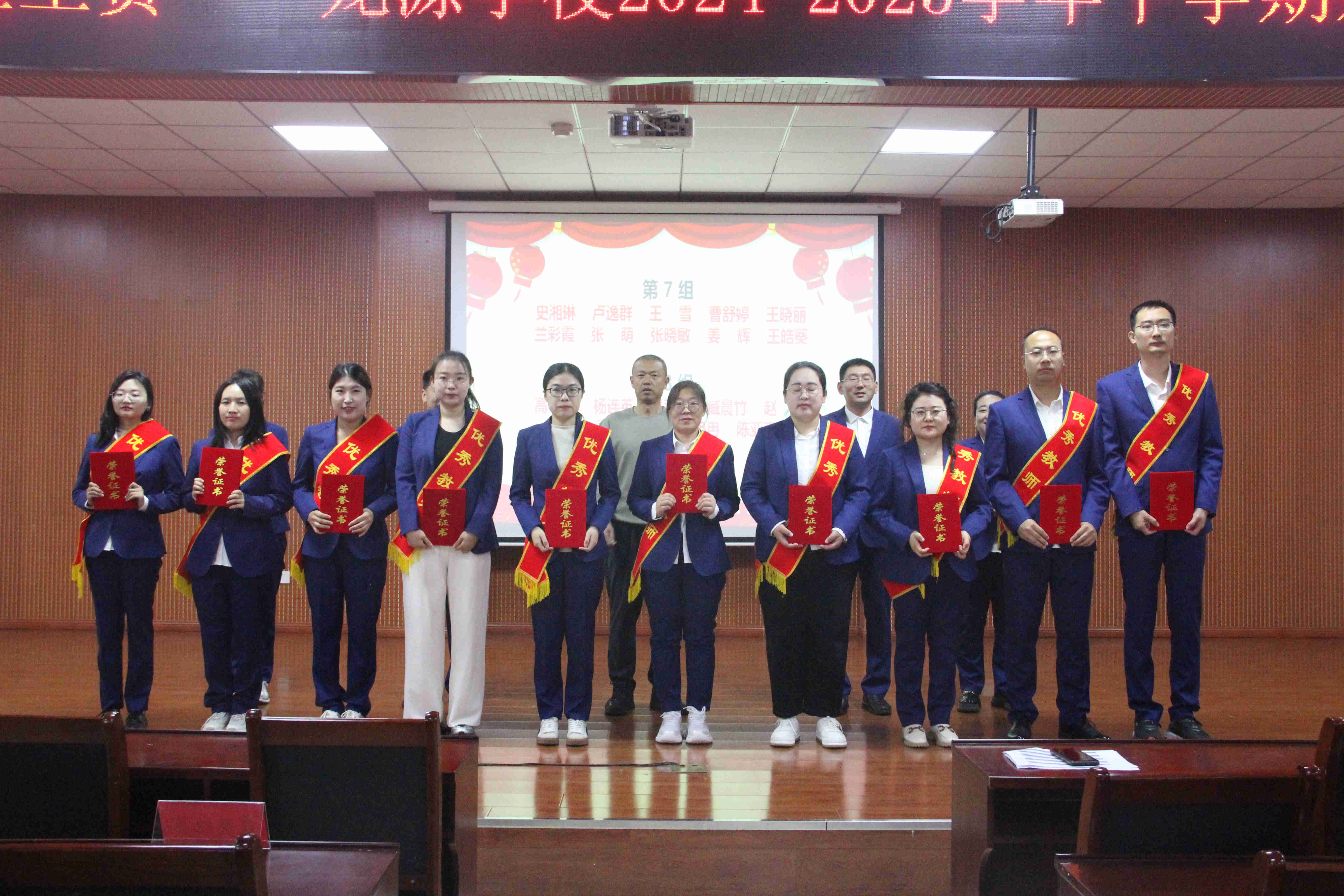 教导处管梓暄老师宣读表彰名单。同时,学校为了激励九年级全体教师,表彰他们用饱满的热情奋战在教学一线,学校特别准备了清凉甘甜的水果和温馨可口的蛋糕,在热烈的掌声中,九年级备课组长作为代表上台领取学校为毕业班教师准备的暖心礼物。优秀备课组长以及优秀教师们陆续登台领奖,校级领导为获奖教师颁奖并合影留念。